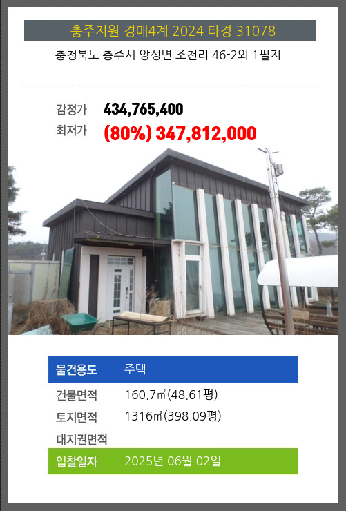충주주택경매 충주시 앙성면 조천리 46-2외 1필지 №2024 타경 31078