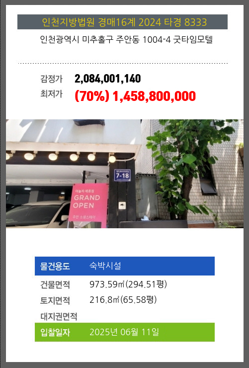 본건은 인천광역시 미추홀구 주안동 1004-4 굿타임모텔