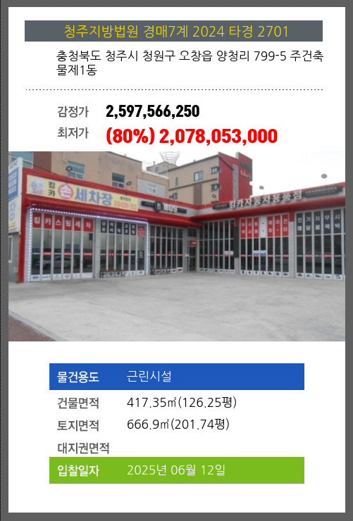 청주시설경매 청주시 청원구 오창읍 양청리 799-5 주건축물제1동 №2024 타경 2701