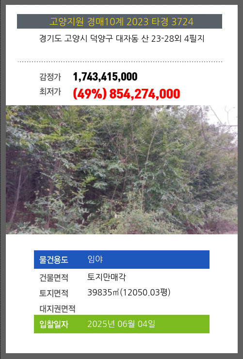 고양임야경매 고양시 덕양구 대자동 산 23-28외 4필지 №2023 타경 3724