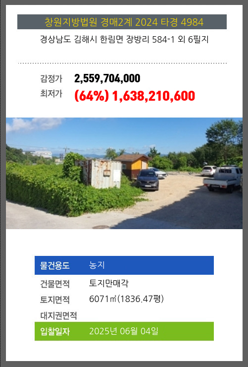 본건은 경상남도 김해시 한림면 장방리 584-1 외 6필지