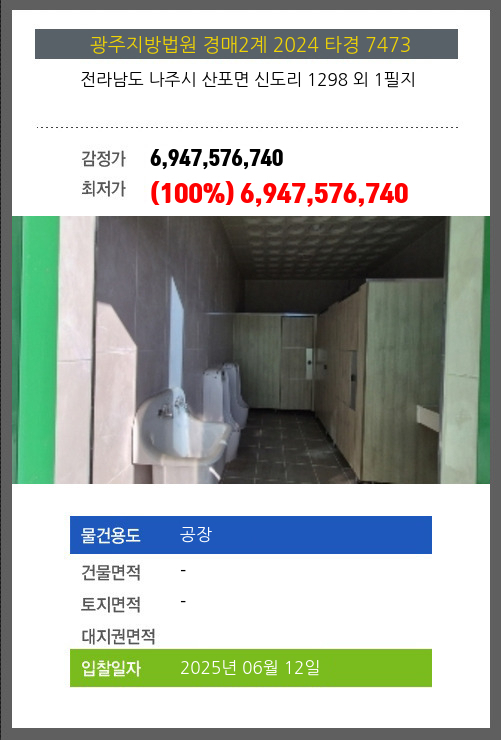 나주공장경매 나주시 산포면 신도리 1298 외 1필지 №2024 타경 7473
