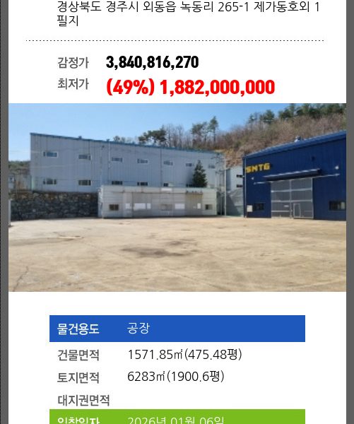 소재하는 공장경매 물건의 포스팅입니다.