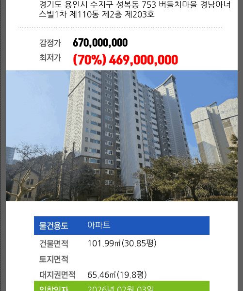 소재하는 아파트경매 물건의 포스팅입니다.
