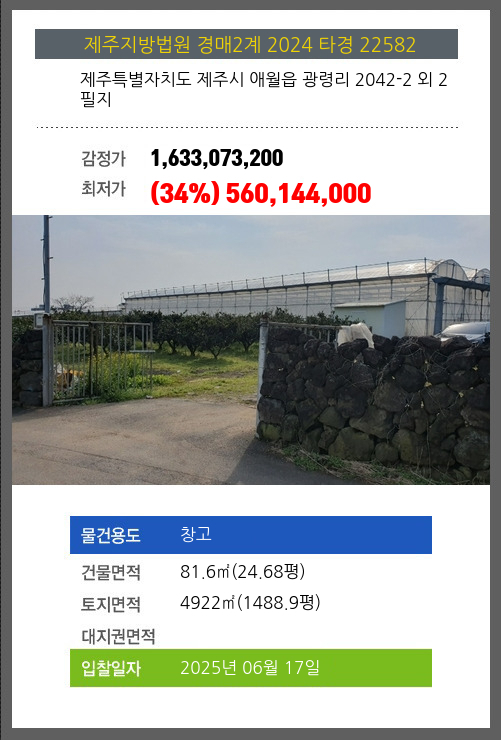 | 소재지 | [지번] 제주특별자치도 제주시 애월읍 광령리 2042-2 외 2필지 | ||||