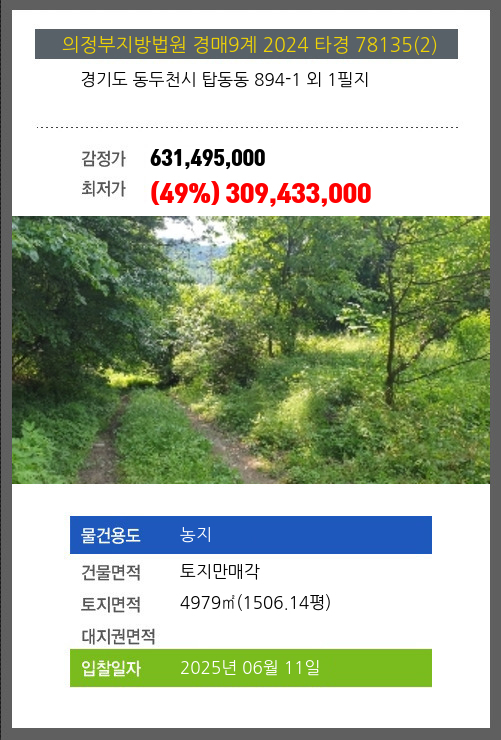 동두천농지경매 동두천시 탑동동 894-1 외 1필지 №2024 타경 78135(2)