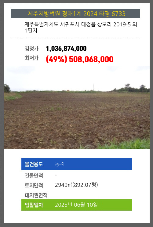 서귀포농지경매 서귀포시 대정읍 상모리 2019-5 외 1필지 №2024 타경 6733