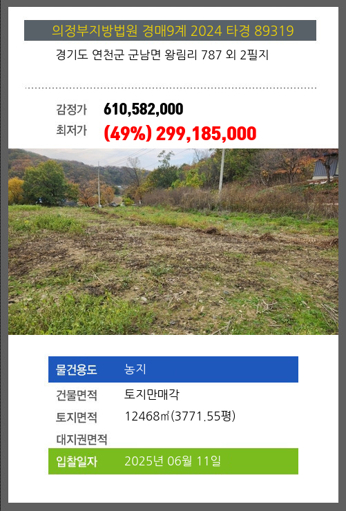연천농지경매 연천군 군남면 왕림리 787 외 2필지 №2024 타경 89319