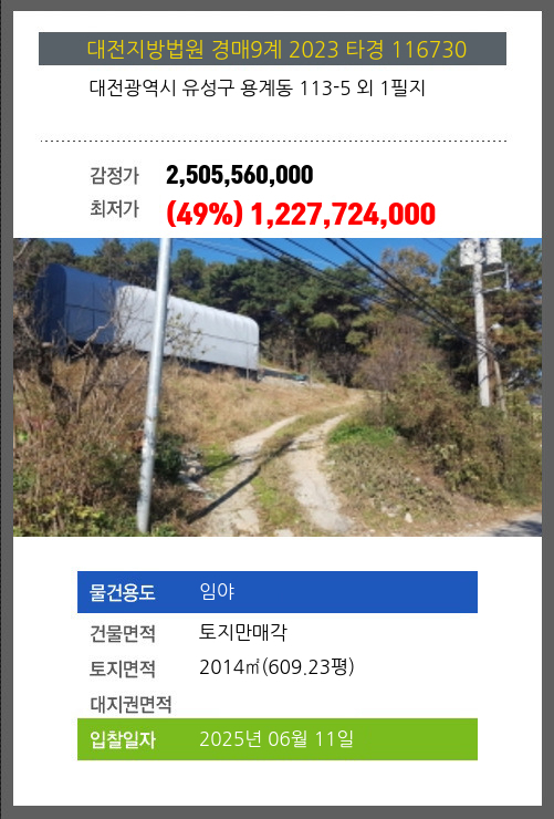 | 소재지 | [지번] 대전광역시 유성구 용계동 113-5 외 1필지 | ||||