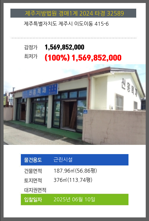 제주시설경매 제주시 이도이동 415-6 №2024 타경 32589