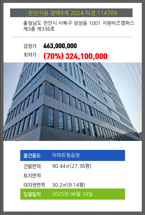 본건은 충청남도 천안시 서북구 성성동 1001 지원비즈캠퍼스 제3층 제336호