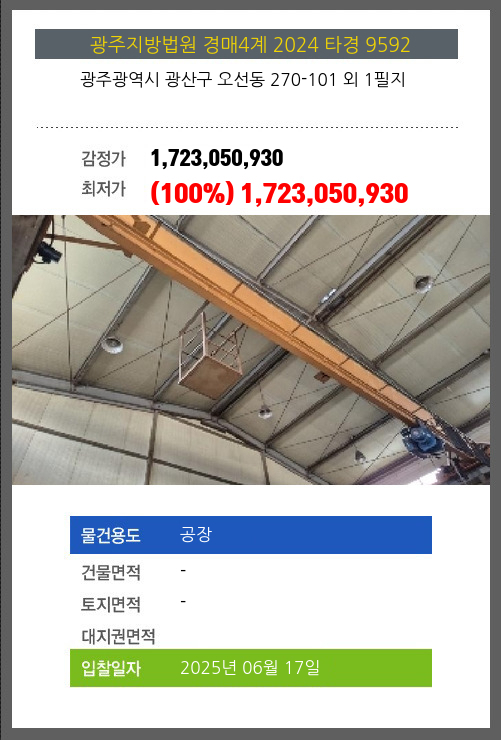 | 용도 | 공장 | 채권자 | 주** | 감정가 | 1,723,050,930 |