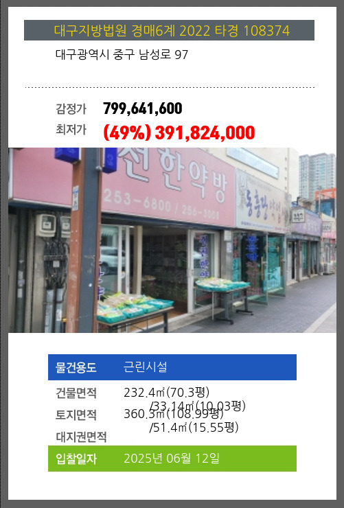 중시설경매 중구 남성로 97 №2022 타경 108374