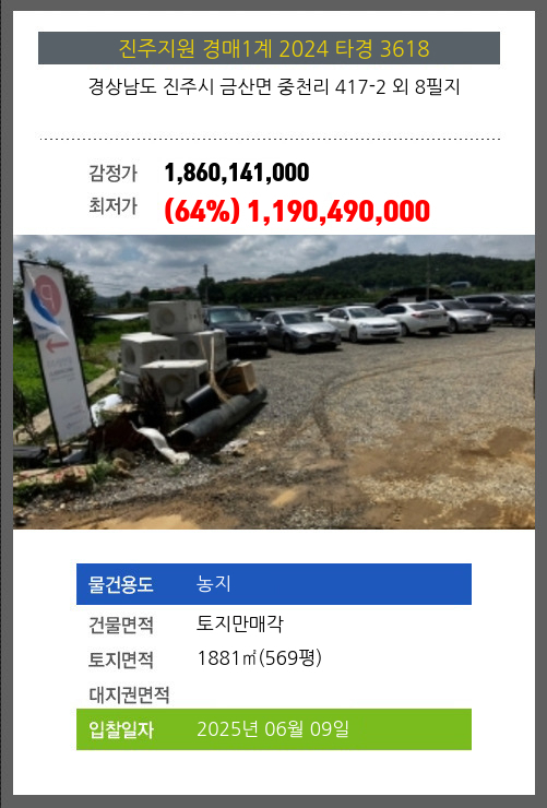 | 소재지 | [지번] 경상남도 진주시 금산면 중천리 417-2 외 8필지 | ||||