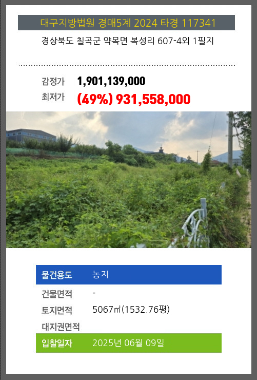 본건은 경상북도 칠곡군 약목면 복성리 607-4외 1필지