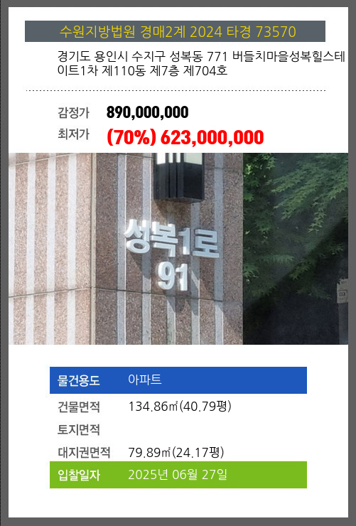 본건은 경기도 용인시 수지구 성복동 771 버들치마을성복힐스테이트1차 제110동 제7층 제704호