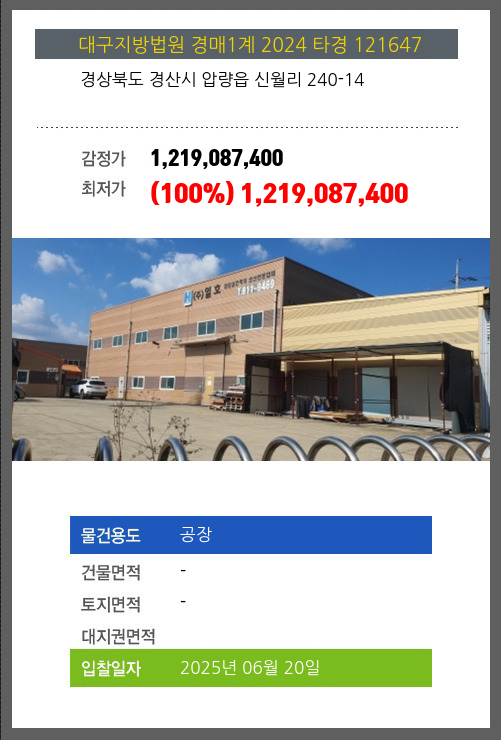 경산공장경매 경산시 압량읍 신월리 240-14 №2024 타경 121647