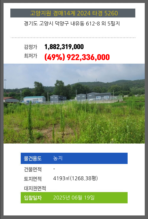 | 소재지 | [지번] 경기도 고양시 덕양구 내유동 612-8 외 5필지 | ||||