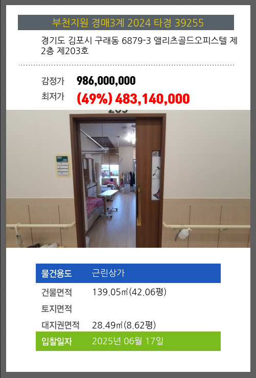 김포상가경매 김포시 구래동 6879-3 앨리츠골드오피스텔 제2층 제203호 №2024 타경 39255