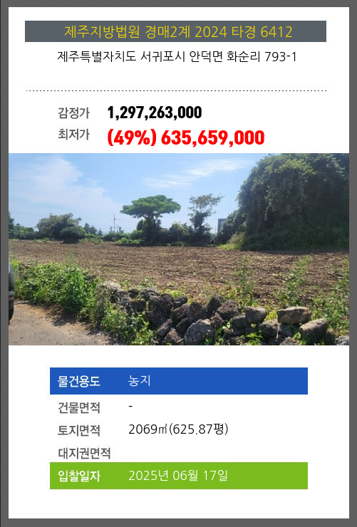 | 용도 | 농지 | 채권자 | 제** | 감정가 | 1,297,263,000 |