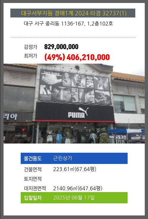 본건은 대구 서구 중리동 1136-167, 1,2층102호