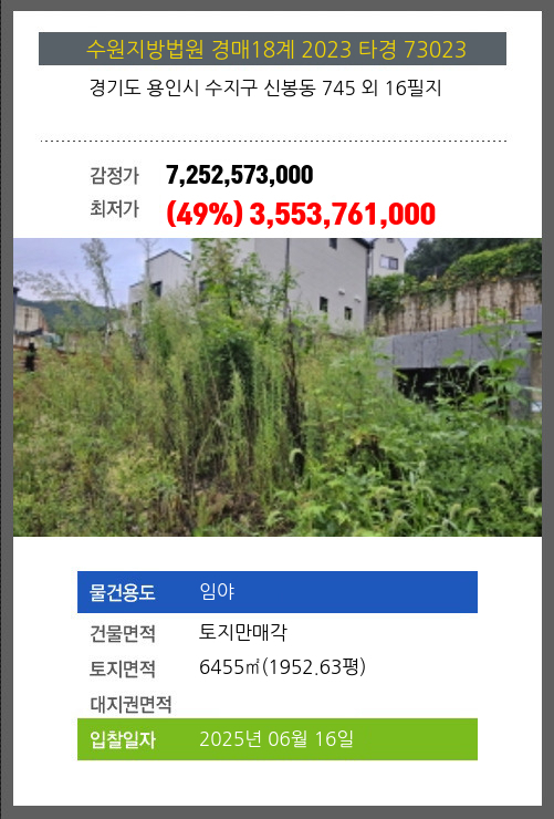 용인임야경매 용인시 수지구 신봉동 745 외 16필지 №2023 타경 73023