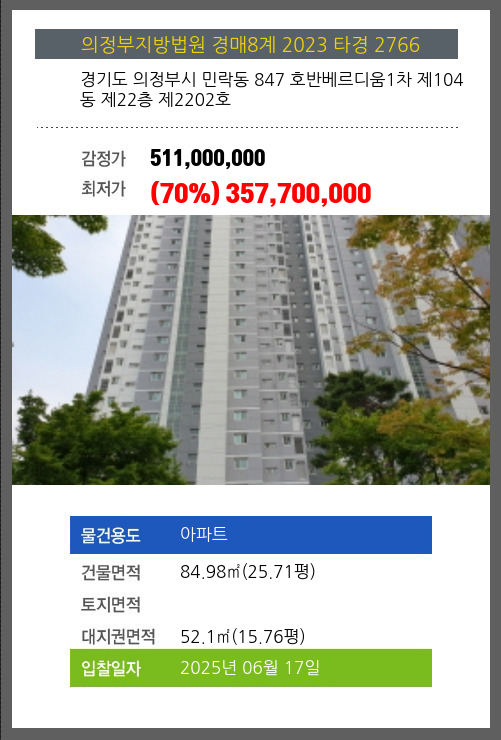 본건은 경기도 의정부시 민락동 847 호반베르디움1차 제104동 제22층 제2202호