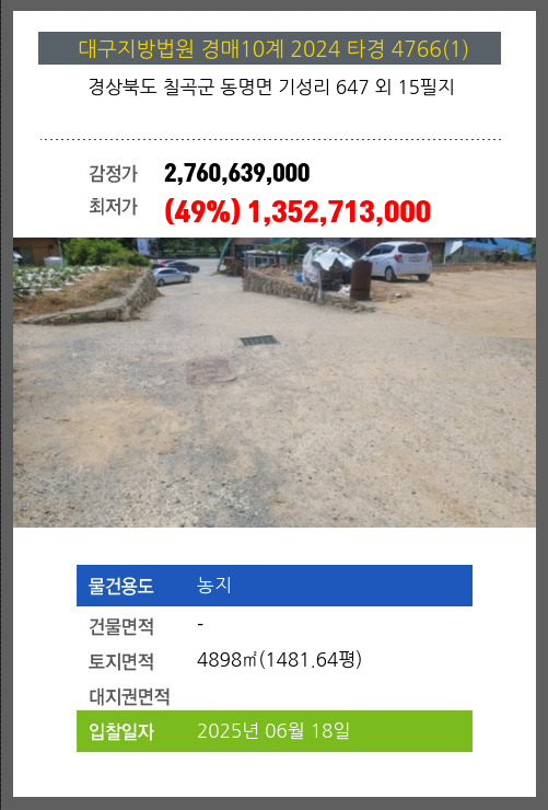 본건은 경상북도 칠곡군 동명면 기성리 647 외 15필지