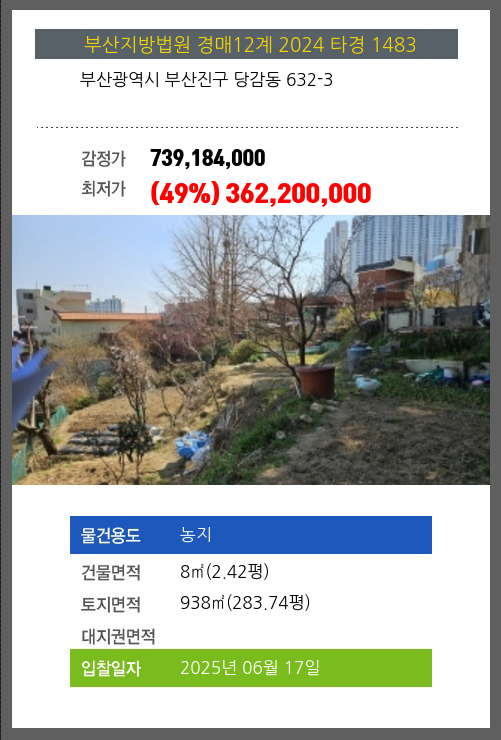 | 신건 | 2025-04-15 | 739,184,000 | 유찰 |