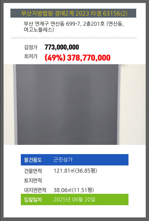 본건은 부산 연제구 연산동 699-7, 2층201호 (연산동,여고노블레스)