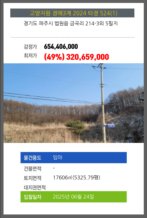 파주임야경매 파주시 법원읍 금곡리 214-3외 5필지 №2024 타경 524(1)