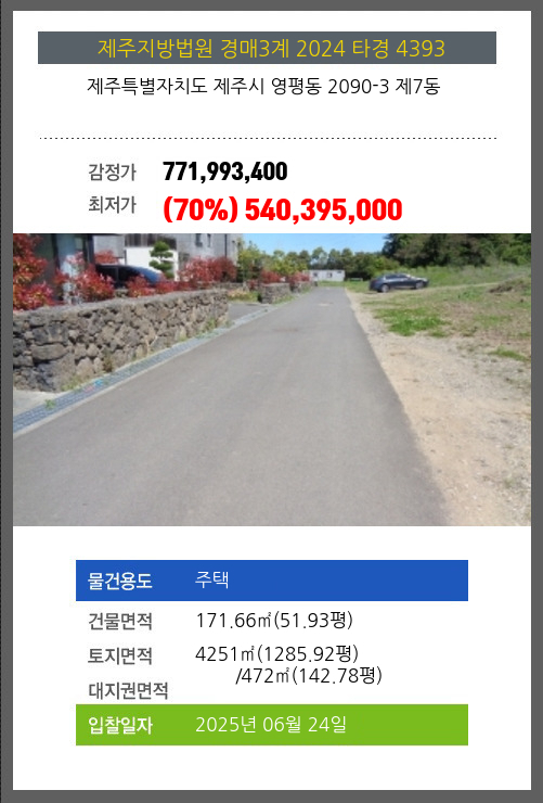 제주주택경매 제주시 영평동 2090-3 제7동 №2024 타경 4393