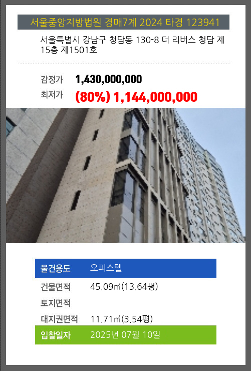 본건은 서울특별시 강남구 청담동 130-8 더 리버스 청담 제15층 제1501호
