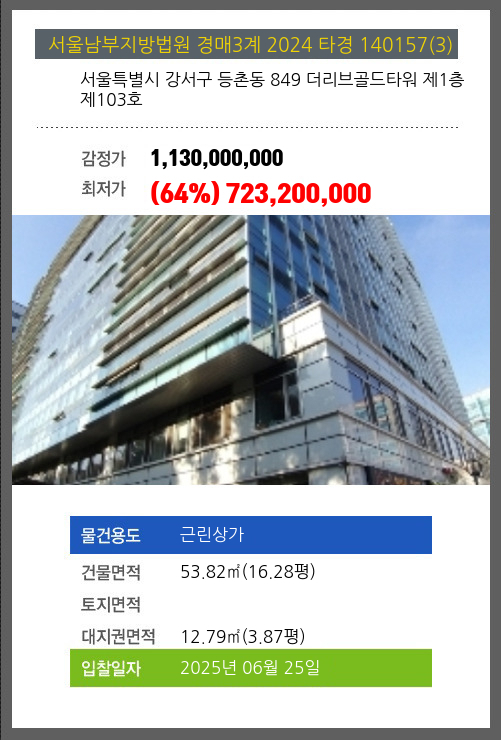 본건은 서울특별시 강서구 등촌동 849 더리브골드타워 제1층 제103호
