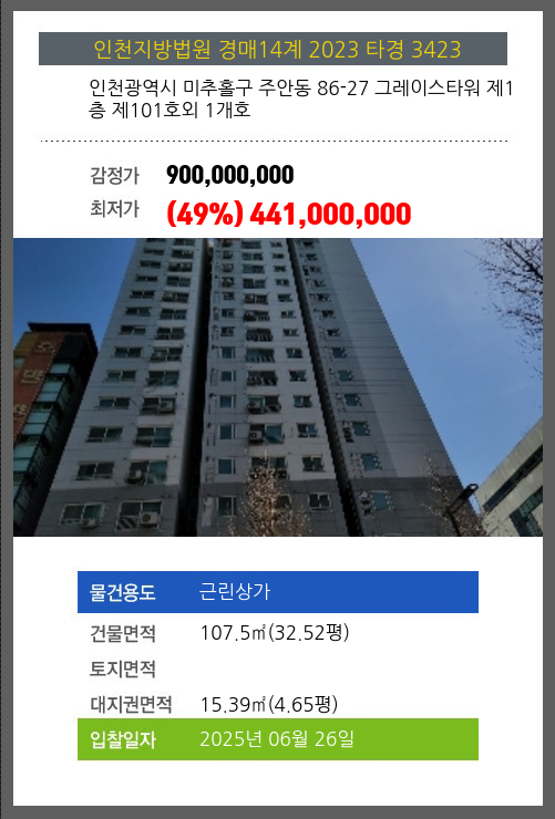 본건은 인천광역시 미추홀구 주안동 86-27 그레이스타워 제1층 제101호외 1개호