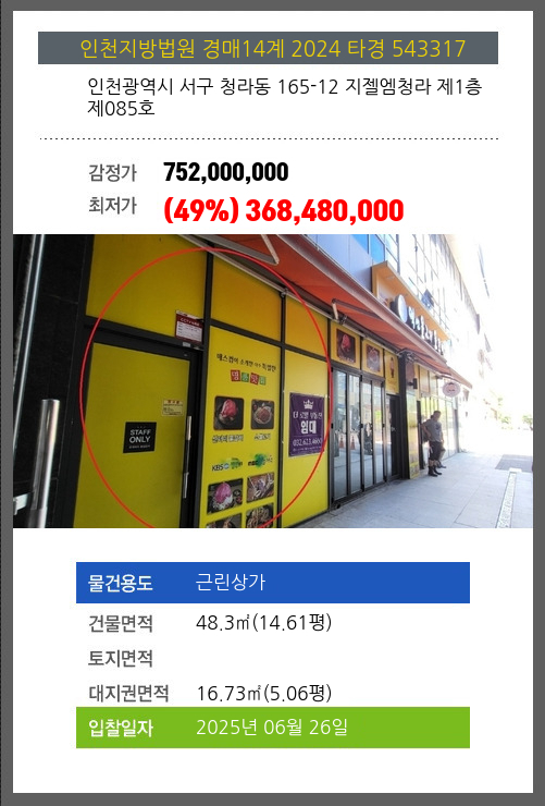 소재하는 근린상가경매 물건의 포스팅입니다.