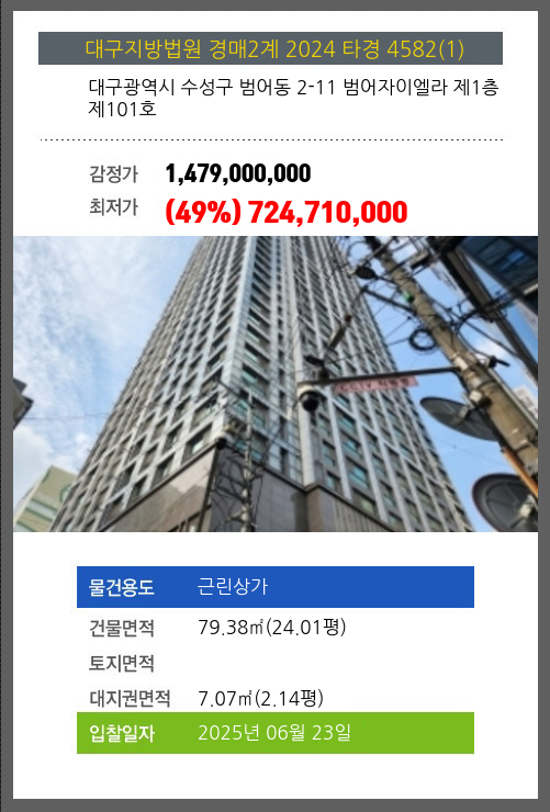 본건은 대구광역시 수성구 범어동 2-11 범어자이엘라 제1층 제101호