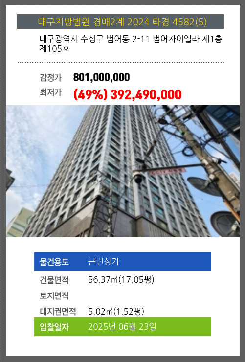 본건은 대구광역시 수성구 범어동 2-11 범어자이엘라 제1층 제105호