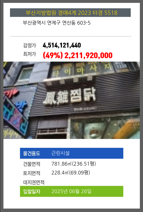 연제시설경매 연제구 연산동 603-5 №2023 타경 5518