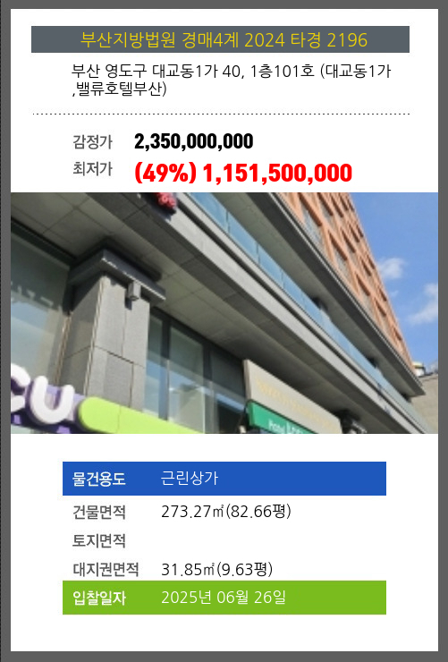 본건은 부산 영도구 대교동1가 40, 1층101호 (대교동1가,밸류호텔부산)