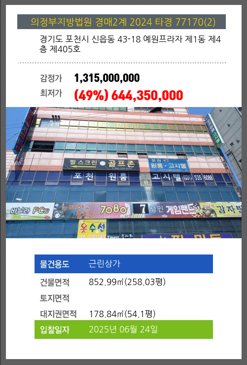 본건은 경기도 포천시 신읍동 43-18 예원프라자 제1동 제4층 제405호