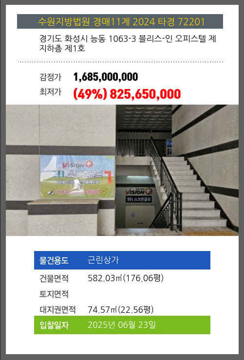 | 용도 | 근린상가 | 채권자 | 에** | 감정가 | 1,685,000,000 |