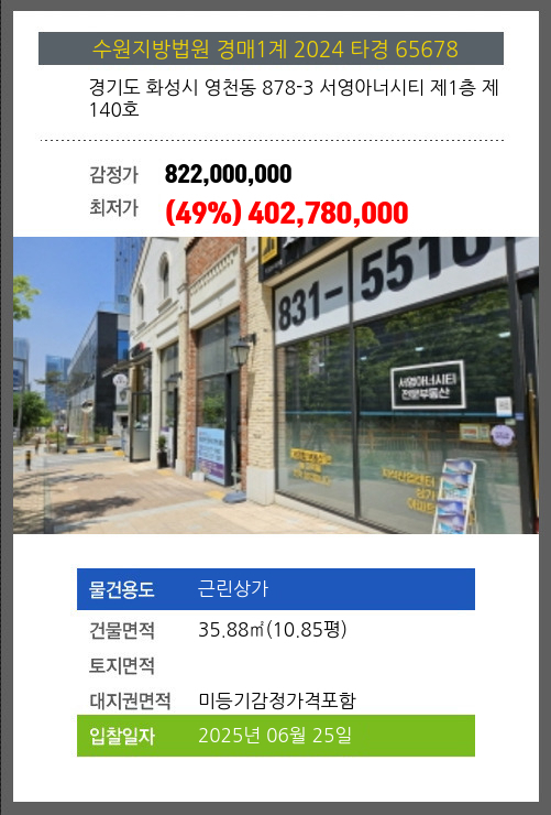 본건은 경기도 화성시 영천동 878-3 서영아너시티 제1층 제140호