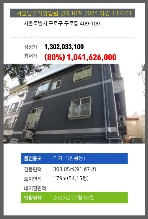 | 신건 | 2025-05-13 | 1,302,033,100 | 유찰 |