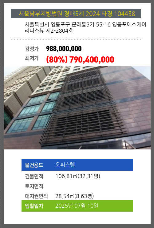 본건은 서울특별시 영등포구 문래동3가 55-16 영등포에스케이리더스뷰 제2-2804호