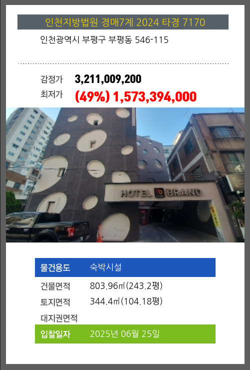 부평숙박시설경매 부평구 부평동 546-115 №2024 타경 7170