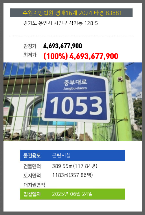 용인시설경매 용인시 처인구 삼가동 128-5 №2024 타경 83881
