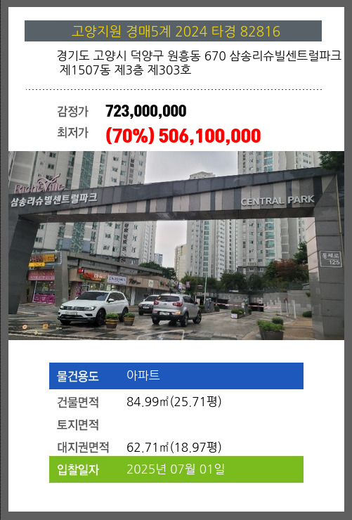 본건은 경기도 고양시 덕양구 원흥동 670 삼송리슈빌센트럴파크 제1507동 제3층 제303호