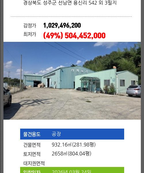 소재하는 공장경매 물건의 포스팅입니다.