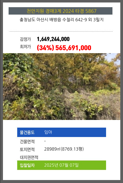 | 소재지 | [지번] 충청남도 아산시 배방읍 수철리 642-9 외 3필지 | ||||